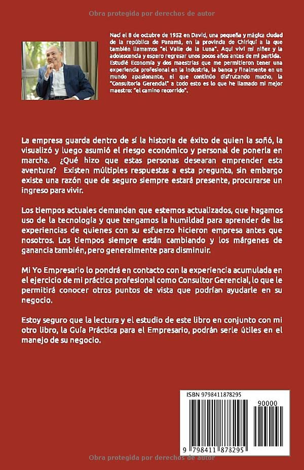Estoy seguro de que la lectura y el estudio cuidadoso de MI YO EMPRESARIO le ahorrará problemas al momento de iniciar su propio negocio y a quienes ya son dueños de una empresa les ayudará a dormir mejor y a incrementar sus ganancias.